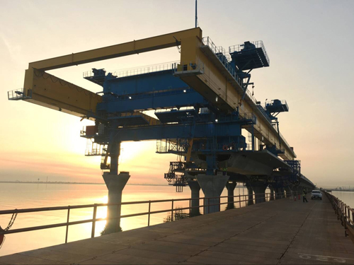 發(fā)布日期:2016-12-30施工現(xiàn)場實況:科威特-GS Doha-link,天業(yè)通聯(lián)不僅向GS Doha-link項目提供了一整套的1700t FSLM 設(shè)備,而且積極深入的參與到了現(xiàn)場的橋梁施工作業(yè)當中。截止到2016年12月29日,由天業(yè)通聯(lián)提供的1700t 運架提設(shè)備,圓滿完成2016年架梁任務(wù),累計架設(shè)完成混凝土箱梁56孔共計112片。