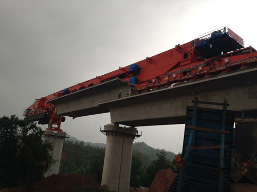 截止到2017年4月17日,由通聯(lián)科技生產(chǎn)的900噸運架一體式架橋機安全完成昌贛鐵路第100片梁的架設(shè)。 此臺架橋機自完成現(xiàn)場安裝調(diào)試投入使用以來,憑借良好的性能和極高效率, 得到了客戶單位和監(jiān)理單位的一致好評。