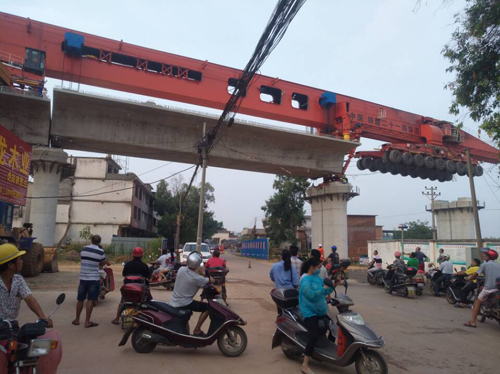 2.2017年8月15日7點28分,通聯(lián)科技900噸無導梁運架一體機成功完成昌贛鐵路贛江特大橋第6孔箱梁跨道路架梁工作。